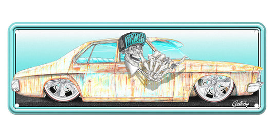 Elevate your man cave with our premium 1mm thick aluminium number plates, illustrated by Australian artist Mark Geltch. Each outdoor-rated sign celebrates iconic vehicles like the Holden HQ Monaro, Sandman, and classic Fords, alongside our exclusive ANZAC memorial collection.